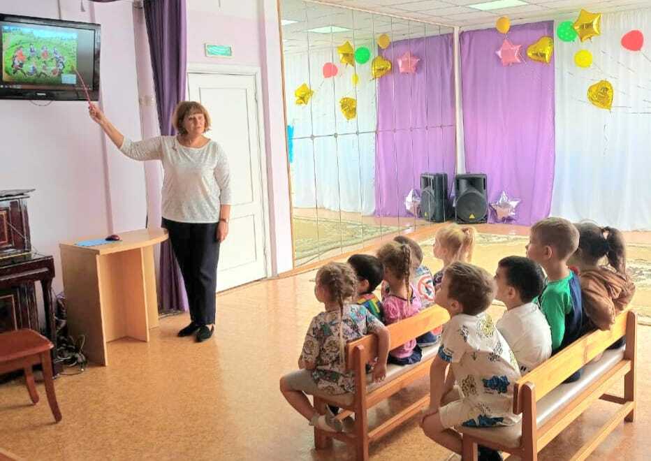Сегодня в старшей группе № 3 прошло занятие по приобщению детей к истокам и культуре страны через русскую народную песню. Ребята узнали, что песня сопровождала людей в труде, быту, в радости и в бедах. Познакомились с частушками, колыбельными, хороводными песнями. Послушали аудиозаписи народных песен: «Во поле берёза стояла», «А я по лугу…», «На горе то калина».Вспомнили, как звучат русские народные инструменты, и исполнили русскую народную песню «Земляничка ягодка».