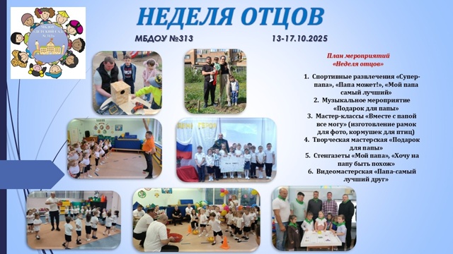 С 13 по 17 ноября в нашем детском саду пройдёт специальная тематическая неделя под названием «Неделя отцов»!