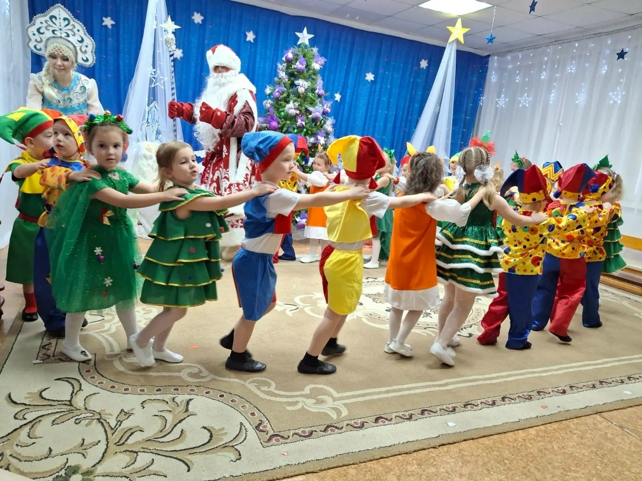 Вместе с ними дети водили хороводы, играли в весёлые игры, рассказывали стихи и зажигали огоньки на ёлке. А какими яркими и точными были костюмы у всех участников! Это сделало волшебство по-настоящему ощутимым.