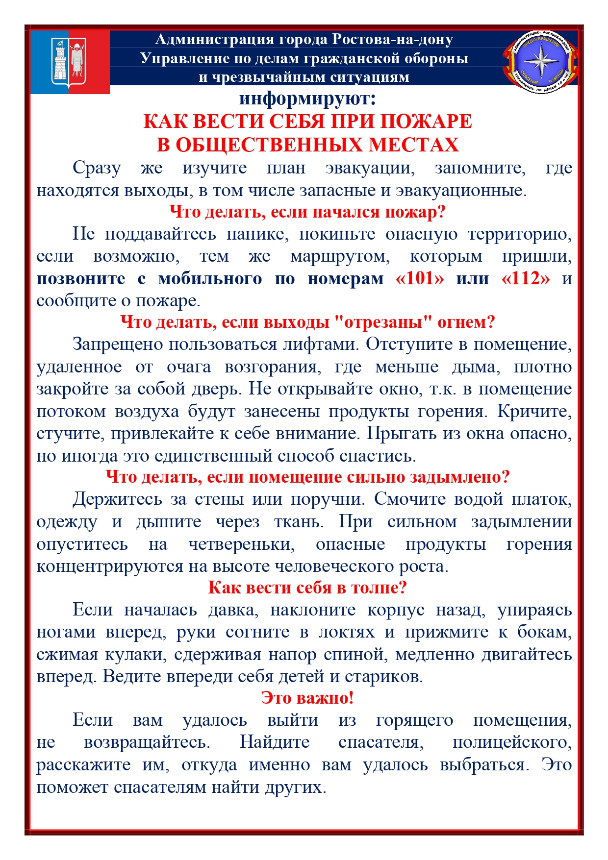 Правила поведения при пожаре в общественных местах